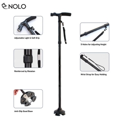 Bộ Gậy Chống Trượt Batoong Gấp Gọn Có Đèn Pin Trusty Cane Có Thể Điều Chỉnh Chiều Cao Chất Liệu Hợp Kim